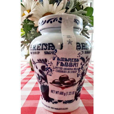 The Amarena cherry is a small sour dark-colored Italian cherry grown in Bologna and Modena, two cities of Italy. The idea to produce this cherry came from Rachale Fabbri around 1905. Along with other products, the company began to produce the cherries in the same jar you are seeing today. The cherry is bottled in syrup and used as a decoration on rich chocolate desserts, not to mention that the jar has many practical uses also. Try it in your Manhattan, or over vanilla ice cream. Today, the company is run by the fourth and fifth generations of the family.
