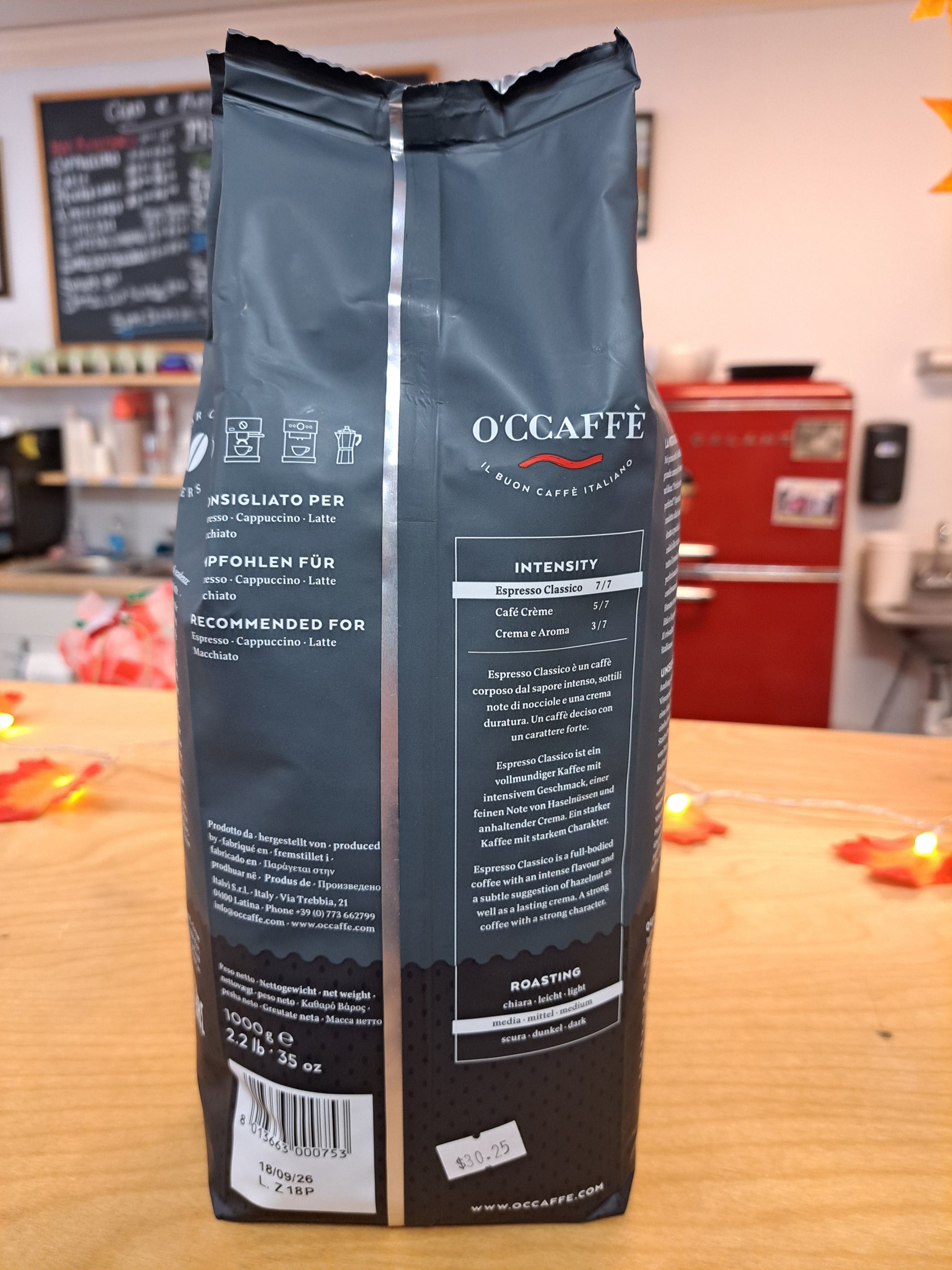 O'CCAFFE Espresso Classico is your ticket to a rich, velvety coffee moment. This bold blend delivers a perfect balance of intensity and smoothness that dances on your taste buds, making every sip an energizing adventure. Ideal for those who crave that classic espresso kick with a fun twist, it's time to brew up some magic and brighten your day!